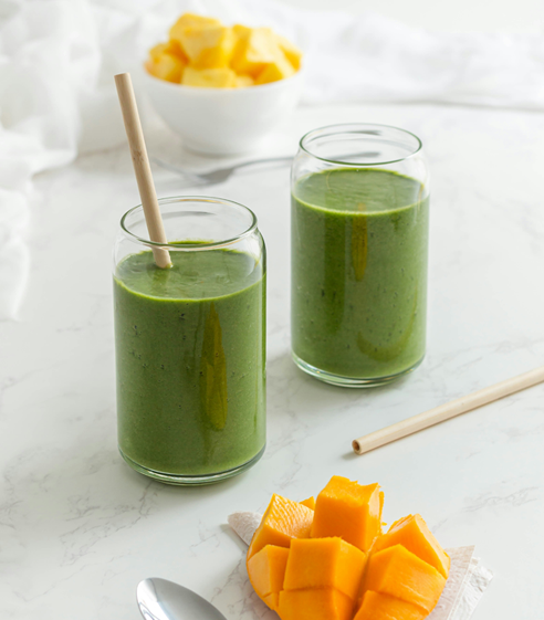 To help you power through the last month of winter and say hello to spring, try a blend of fresh spinach with frozen mango. Add water or your favourite milk for a quick and vibrant nutrient boost.